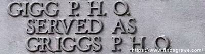 Son of Jemima Gigg, of 126, Odessa Rd., Forest Gate, London, and the late William Gigg.