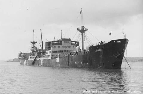 The Triadic had a crew of 60 and a few passengers. The only casualty was a Filipino, Simeon Jiminez, and the only passenger who was injured was young Jimmy Langar, who was returning home with his mother and brother to join their father on his plantation. The personnel of the vessel was taken aboard the supply ship which has featured in all the raids. Continuing. Captain Callender said that one raider and the mother ship, bore Japanese markings, but the other raider which had contributed to sinking five vessels including three of his own line, was painted completely black and bore no markings.